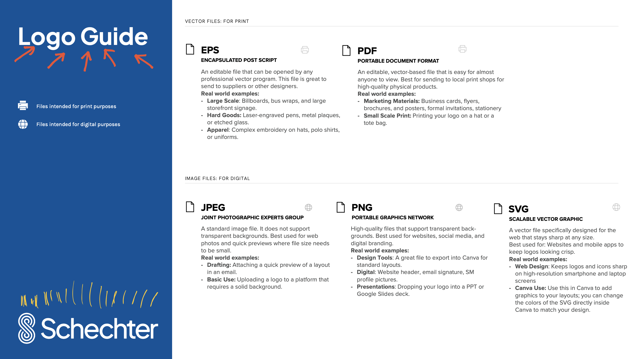 Logo Formats Horizontal Logo Stacked (Vertical) Logo Wordmark Indivisible Icon Logo With Doodles Icon With Doodles Logo Files Guide Colors Color HEX Typography Plus Jakarta Sans Noto Sans Hebrew Graphics Doodles Scribbles S Character Documents Presentation Deck Google Slides Digital Letterhead (Playful version) Style Guide Style Guide AI Content Schechter GPT AI Prompts